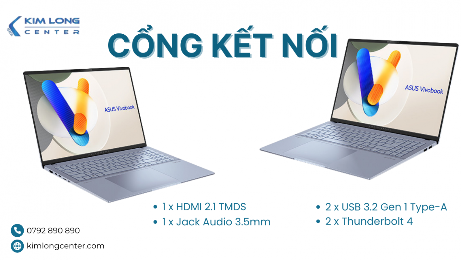 Vivobook S 16 OLED cung cấp đầy đủ cổng kết nối để đáp ứng nhu cầu sử dụng: