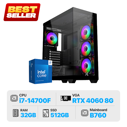 PC Gaming KLC-BLAST : i7-14700F | 32GB | 512GB | B760-A | RTX 4060 8GB | Case Xigmatek Blast 4GF | Tản nhiệt nước VSP Infinity Liquid Cooler