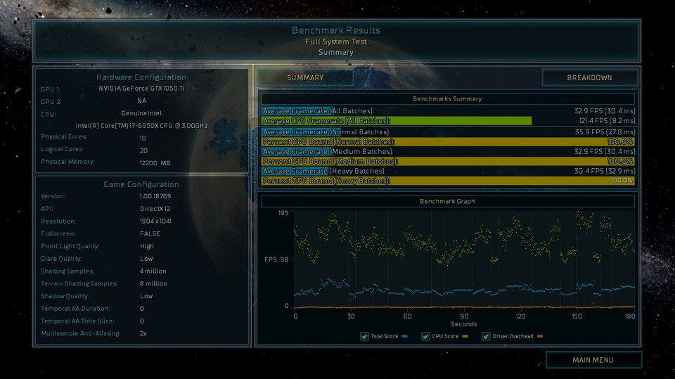 Với Ashes of the Singularity thuộc thể loại game chiến thuật vĩ mô và cũng là một trong những tựa game đầu tiên hỗ trợ đồ họa DirectX 12. MSI 1050 Ti 4G OC tỏ ra “khá đuối” khi kết quả đạt được chỉ cao hơn ngưỡng 30 fps với thiết lập đồ họa mặc định. Trong trường hợp này, việc hạn chế một vài hiệu ứng đồ họa nâng cao sẽ giúp bạn cải thiện tốc độ khung hình tốt hơn.