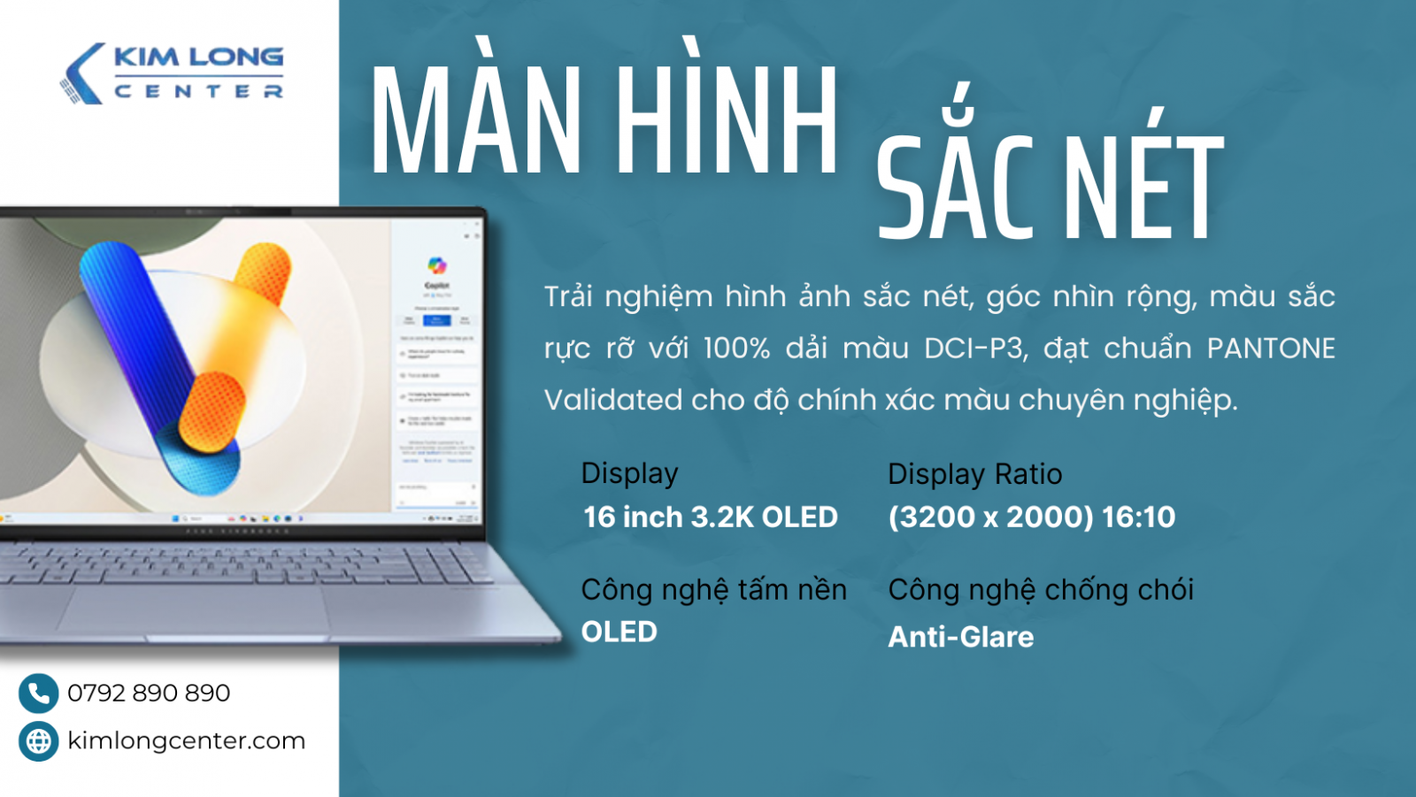 | Màn hình / LCD | 16.0inch 3.2K (3200 x 2000) 16:10, OLED, 120Hz, 400nits, 100% DCI-P3 |