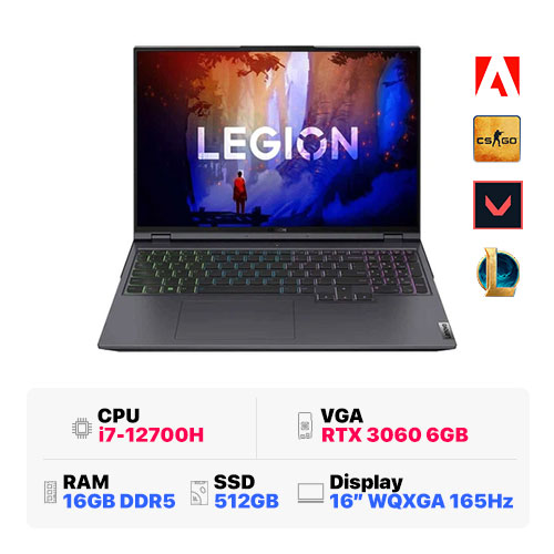 Lenovo Legion 5 Pro 16IAH7H 82RF0043VN : i7-12700H | 16GB RAM | 512GB SSD | RTX 3060 6GB | 16 inch WQXGA 165Hz | Windows 11 | Storm Grey
