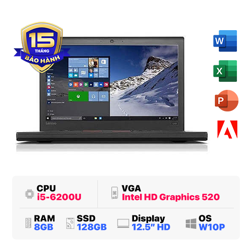 Lenovo Thinkpad X270 : i5-6200U | 8GB RAM | 128GB SSD | Intel HD Graphics 520 | 12.5 HD | Windows 10 Pro | Black | Likenew