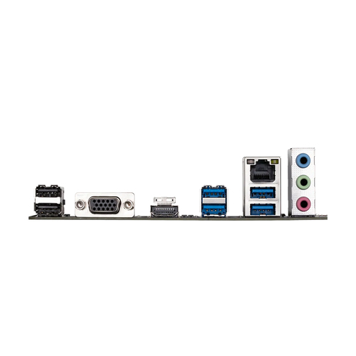 Cổng kết nối phía sau 2 cổng USB 2.0/1.1, 1 cổng D-Sub, 1 cổng HDMI. 4 cổng USB 3.2 Gen 1, 1 cổng LAN RJ-45, 3 jack âm thanh.