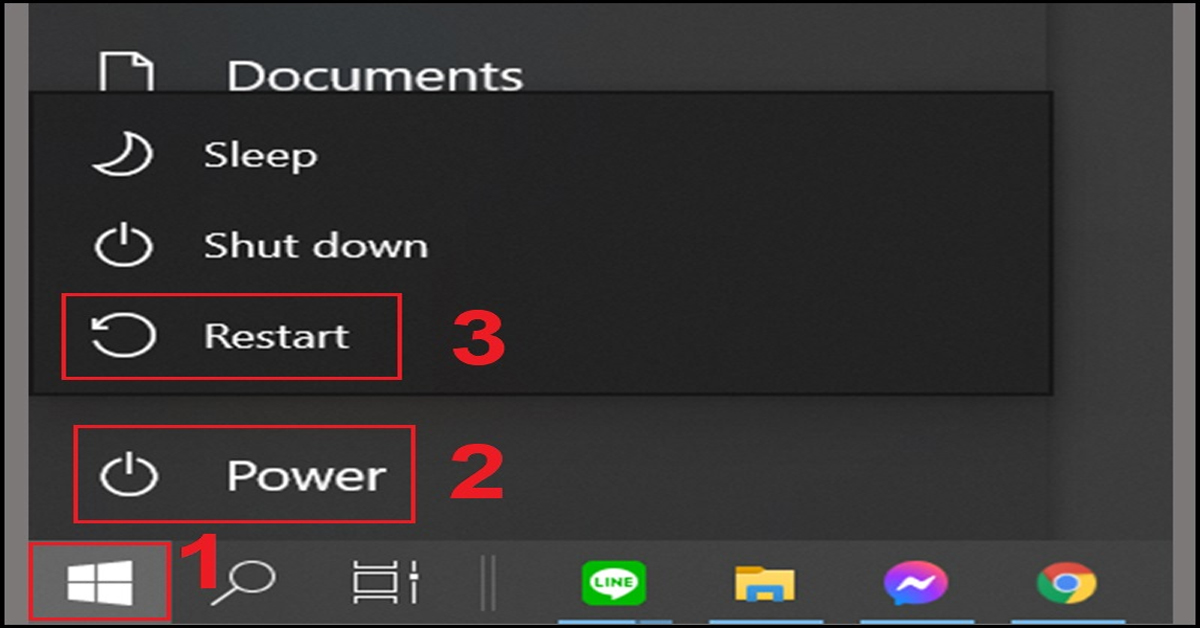 Để khởi động lại máy tính, bạn nhấn vào biểu tượng Windows ở góc trái bên dưới màn hình > Chọn "Power" > "Restart".