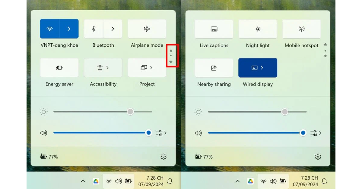 Menu Quick settings hiển thị được nhiều nút hơn nhờ giao diện cuộn.