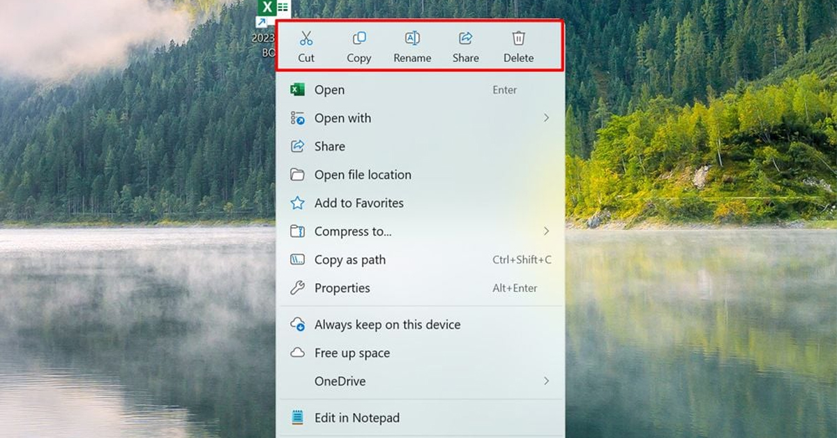 Microsoft đã bổ sung nhãn cho các hành động trong menu ngữ cảnh, giúp người dùng có thể nhận biết và lựa chọn các tác vụ cần thực hiện. Tính năng này góp phần nâng cao tính trực quan và đơn giản hóa việc điều hướng các tùy chọn trong Windows 11.
