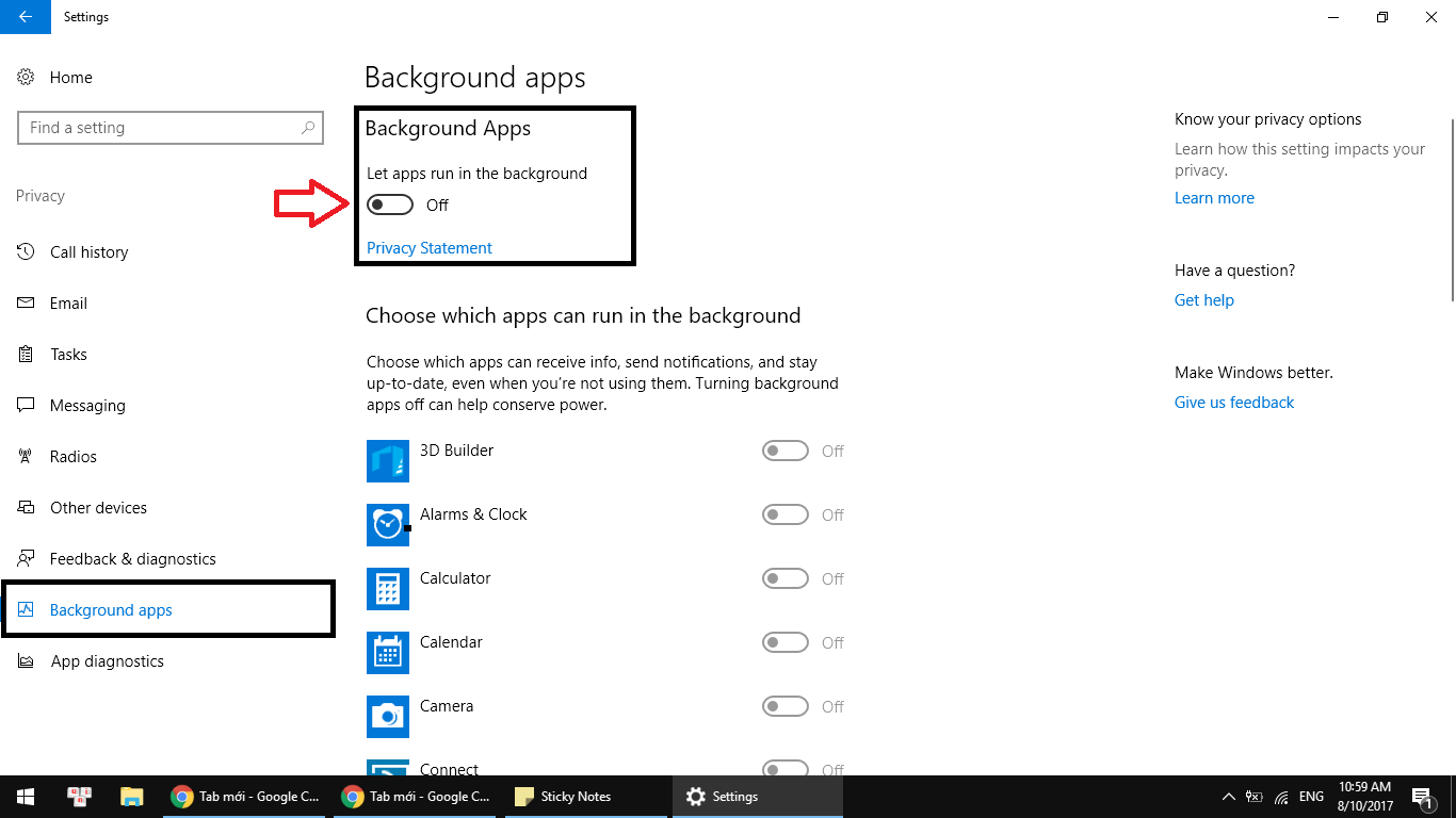 Cách 6 : Tắt các dịch vụ không cần thiết trong Setting Windows